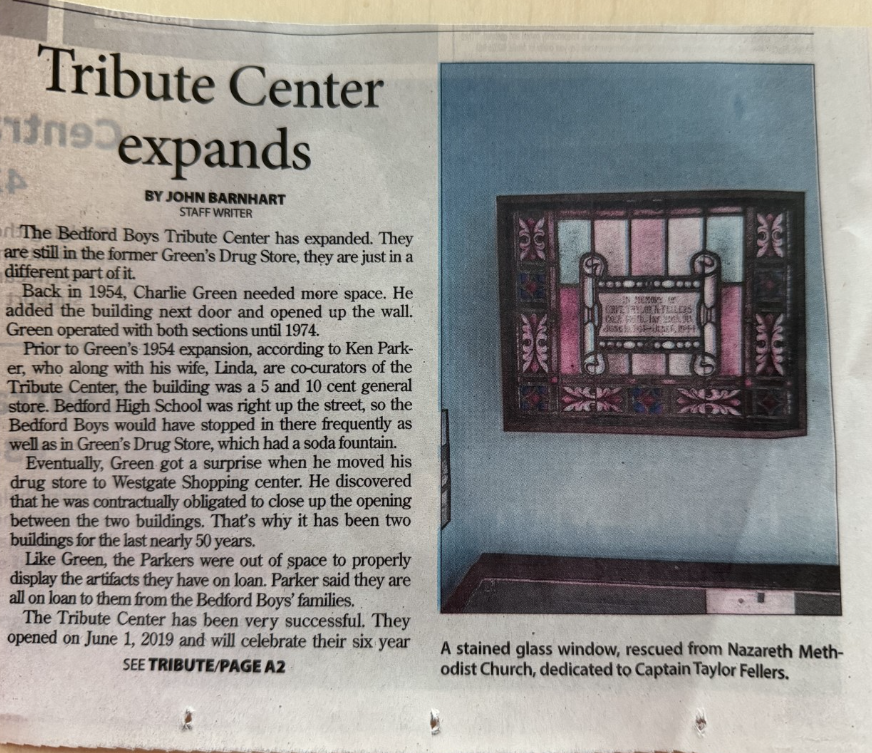 The Bedford Boys Tribute Center has expanded. They are still in the former Green's Drug Store, they are just in a different part of it.